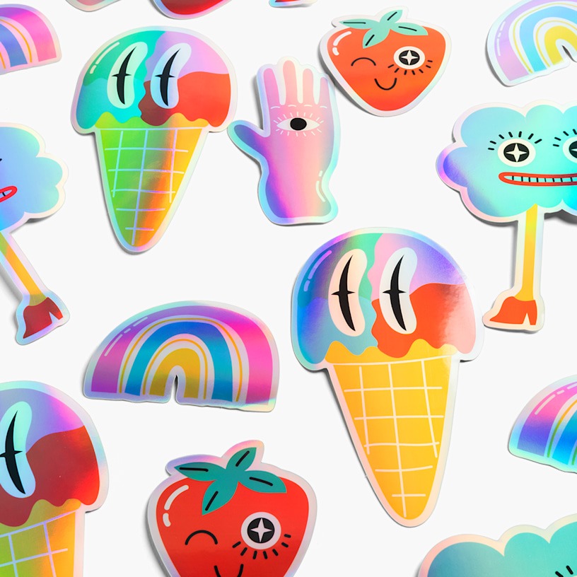 Diseña pegatinas resistentes a los derrames, las salpicaduras y la lluvia. Impresión a todo color con formas y tamaños que se pueden personalizar.