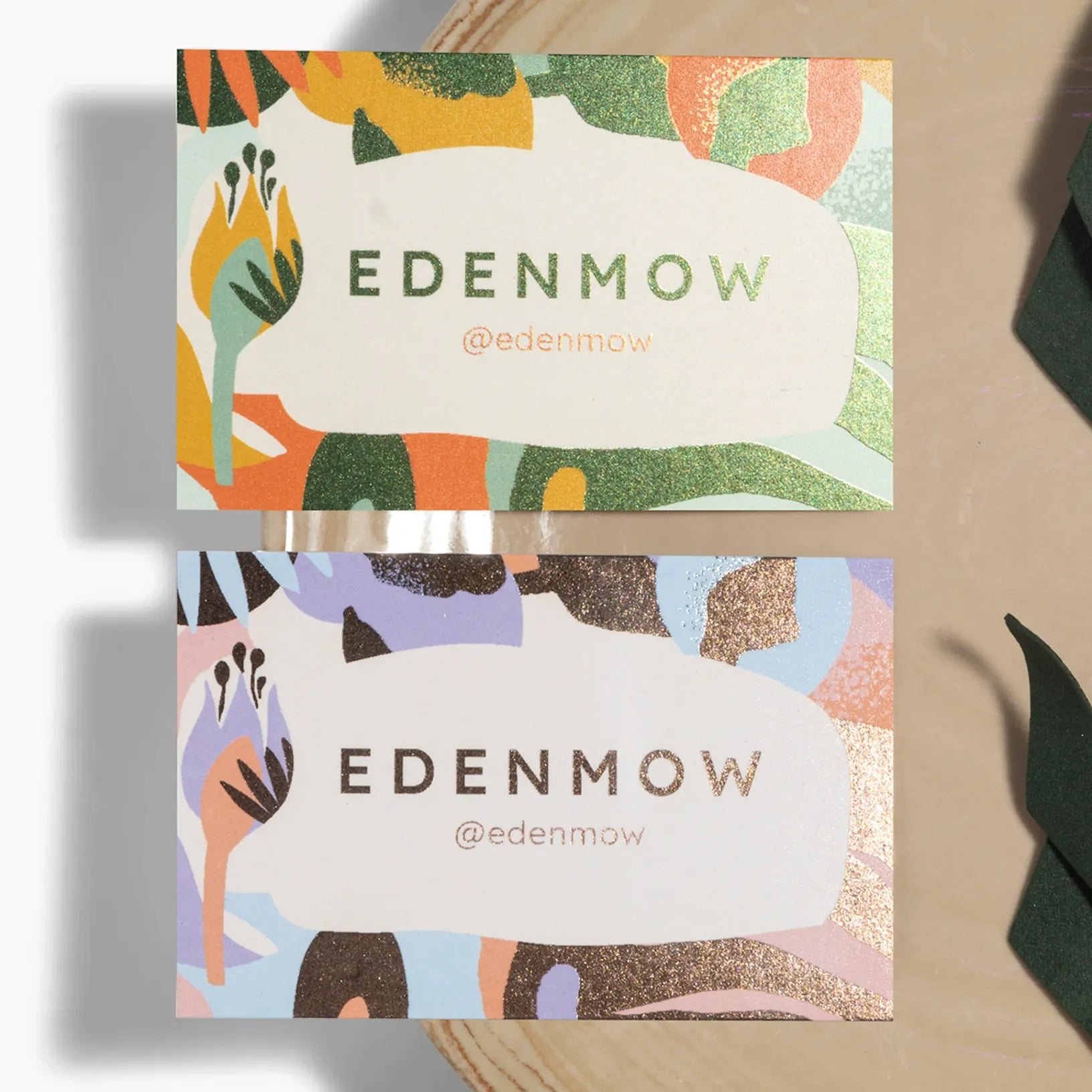 Añade detalles brillantes a tus tarjetas para resaltar texto, logotipos y mucho más. Personaliza tu diseño y decide qué partes quieres que sean metalizadas.
